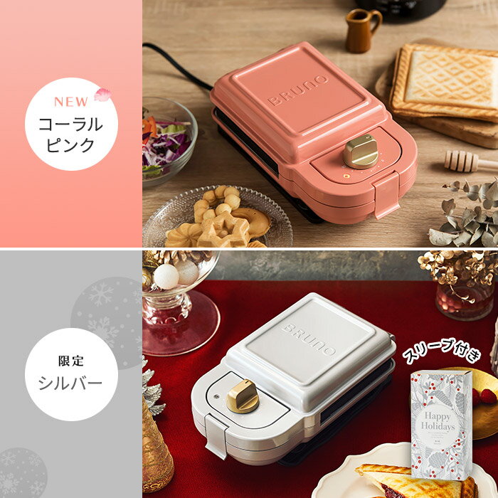 ホットサンドメーカー シングル 【限定カラー】 BRUNO ブルーノ BOE-043 レッド ホワイト ホットサンドベーカー 耳まで焼ける 両面焼き 着脱式 タイマー 食パン トースト おしゃれ かわいい 白 プレゼント ギフト