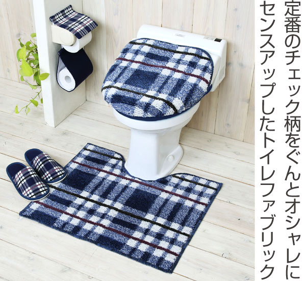 トイレマット プレード 55×65cm ( トイレ マット トイレタリー 55cm 幅広 トイレ用品 トイレグッズ カジュアル ナチュラル チェック おしゃれ )