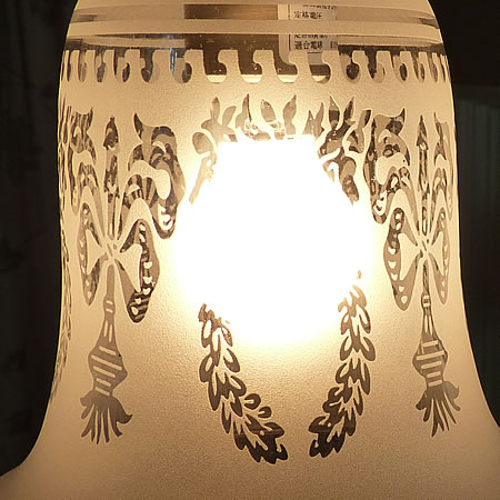植物の模様が描かれたどこかオリエンタルな印象のガラスランプ。